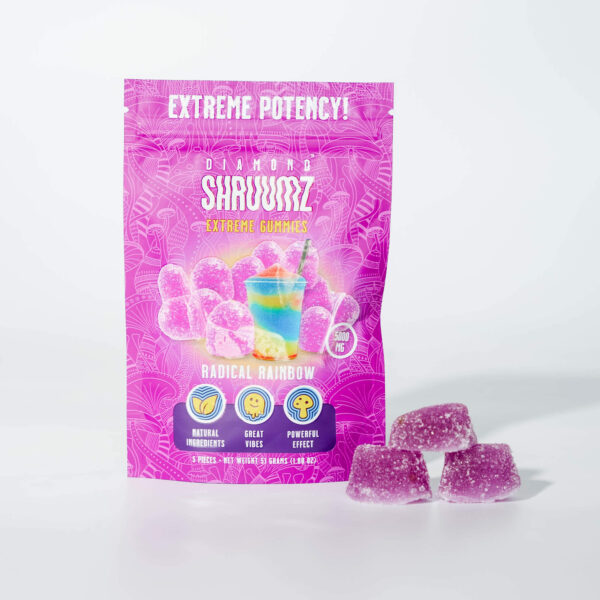 Rainbows are the bridges that connect our humble world to the magic of unicorns and pots of gold. They deliver us fruity cereal and sweet candy. If they’s not radical, we don’t know what is. Our five-piece bag of Radical Rainbow Extreme Gummies is filled with a mind-blowing 5000 mg our primo proprietary microdose blend of nootropic and functional mushrooms, and tons of tasty natural flavors for an extreme kick. Each 1.80 ounce bag includes 5 trippy little gummies for a ton of far out fun.